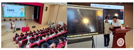 冯朝君老师通过《宇宙探索》与《Universe Sandbox核心工坊》课程,带领学生开启宇宙探索之旅。他系统阐述宇宙起源与结构理论,引导学生借助软件开展虚拟仿真实验,模拟“将太阳替换为黑洞”“三体运动”等场景。此外,冯教授的《启动创意引擎——AI数理探索》和《我的专属科幻太空》课程,让学生体验人工智能在数理探索中的创新应用。