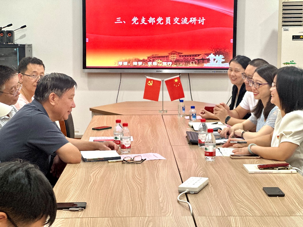 会上,林方婷书记首先简要介绍了支部基本情况:现有党员29人,全员博士,45岁以下青年党员占86%,高级职称20人,拥有国家杰青、优青等高层次人才。近年来,支部坚持党建与业务深度融合,于2024年顺利通过全国高校“双带头人”教师党支部书记工作室验收,并入选全国高校“双带头人”教师党支部书记“强国行”专项行动团队,持续发挥示范辐射作用。