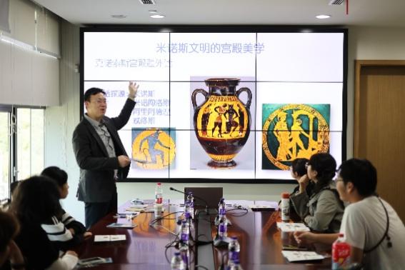 随后,在“艺术研讨”环节,在林恺老师的主持下,大家就本次观展感受最深的桃金娘式金花冠为切入点,对古希腊的社交宴会、戏剧庆典、科技和工程等话题展开研讨。对于希腊文明的源头、早期发展,东西方文明的交融和艺术体现进行了深入的了解和交流。林恺老师从古希腊陶瓶制作、神话文本、雕塑与艺术范式变化等角度,与同学们一起回顾了陶瓶、青铜器、雕塑的工艺发展,以及工程技术和神话故事在艺术背后的重要作用。同学们在鉴赏古代器物与雕塑的过程中,不仅通过艺术审美拓宽了认识世界的维度,更在观照它者、认识自己的文化共鸣中,深化了对新时代文明互鉴的理解。本次活动在校学生艺术中心的指导和关心下组织开展。