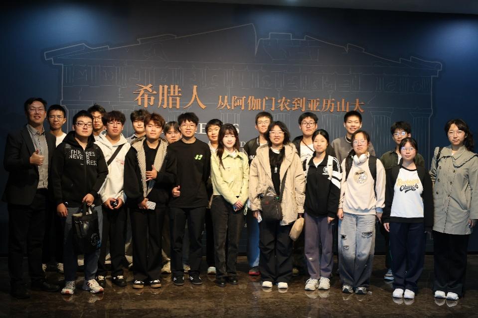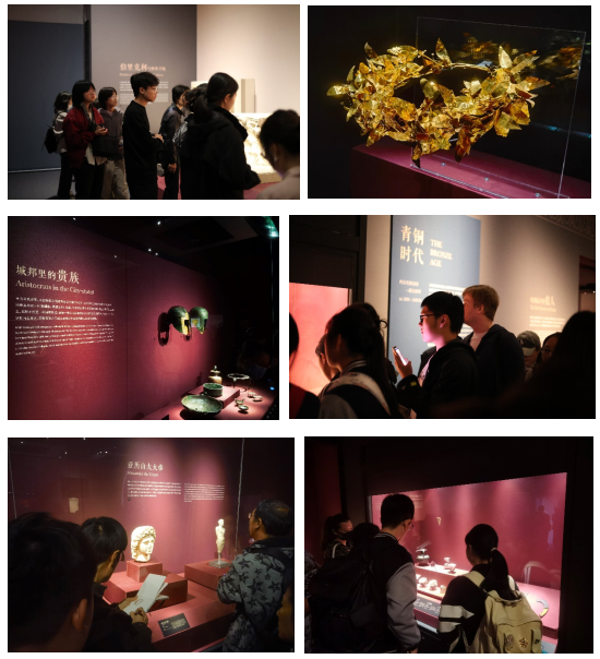 走进“希腊人:从阿伽门农到亚历山大”展,当同学们在一件件文物中走过,欣赏到的是来自希腊14家文博机构的270件(套)珍贵展品,包含金器、青铜器、陶器、雕塑等多种品类,这些艺术珍品代表了古希腊文化四个重要历史时期的艺术和科技发展,全景式的再现了古希腊文明的图景。在艺术品前驻足、欣赏、拍照、低声讨论,同学们感受到了古代希腊人同喜共悲的时光,与跨越万里千年的文明进行了一次“对话”。