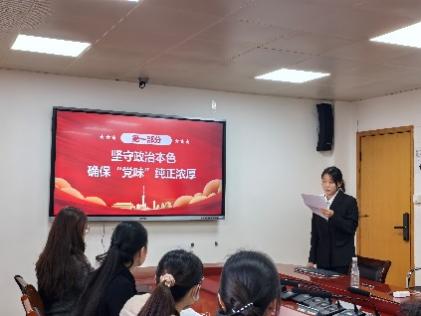 陈嘉琪同学就“主题党日如何展开”进行论述,指出“党味浓”在于坚守政治本色,强化思想引领与实践锻炼;“特色足”则需结合学科科研特色,创新形式如实地寻访、主题辩论、微课堂等;强调“党味”与“特色”辩证统一,形式创新服务于内容深化,最终要在提升实效上用力。